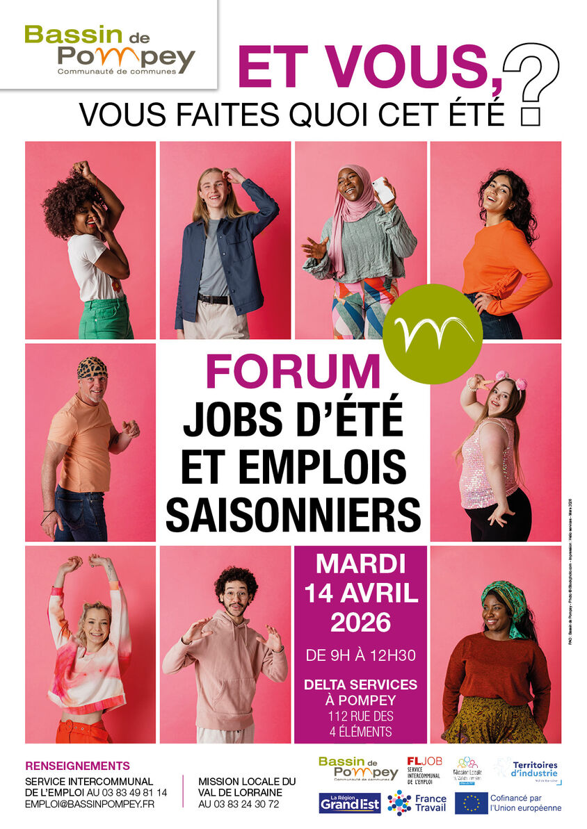 À la recherche d’un emploi saisonnier ou de nouvelles opportunités professionnelles ? Le Forum emploi saisonnier se tiendra le 14 avril 2026 à Pompey. Une matinée dédiée à la rencontre entre candidats et recruteurs de plusieurs secteurs, avec également la présence d’organismes de formation pour vous accompagner dans le développement de vos compétences.